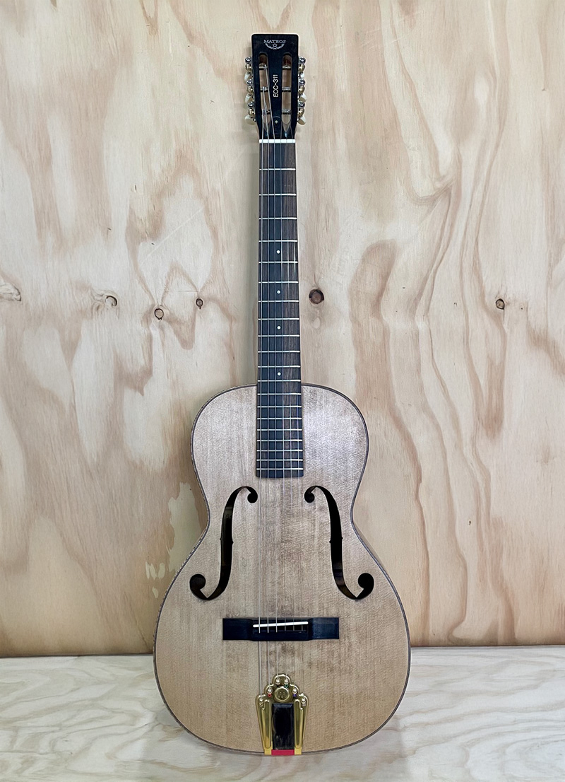 Built by hand in our workshop, the Tennessee «F-holes» combines power and elegance. An acoustic guitar with great projection and balanced timbre, ideal for those seeking a clear, dynamic sound with artisanal character.