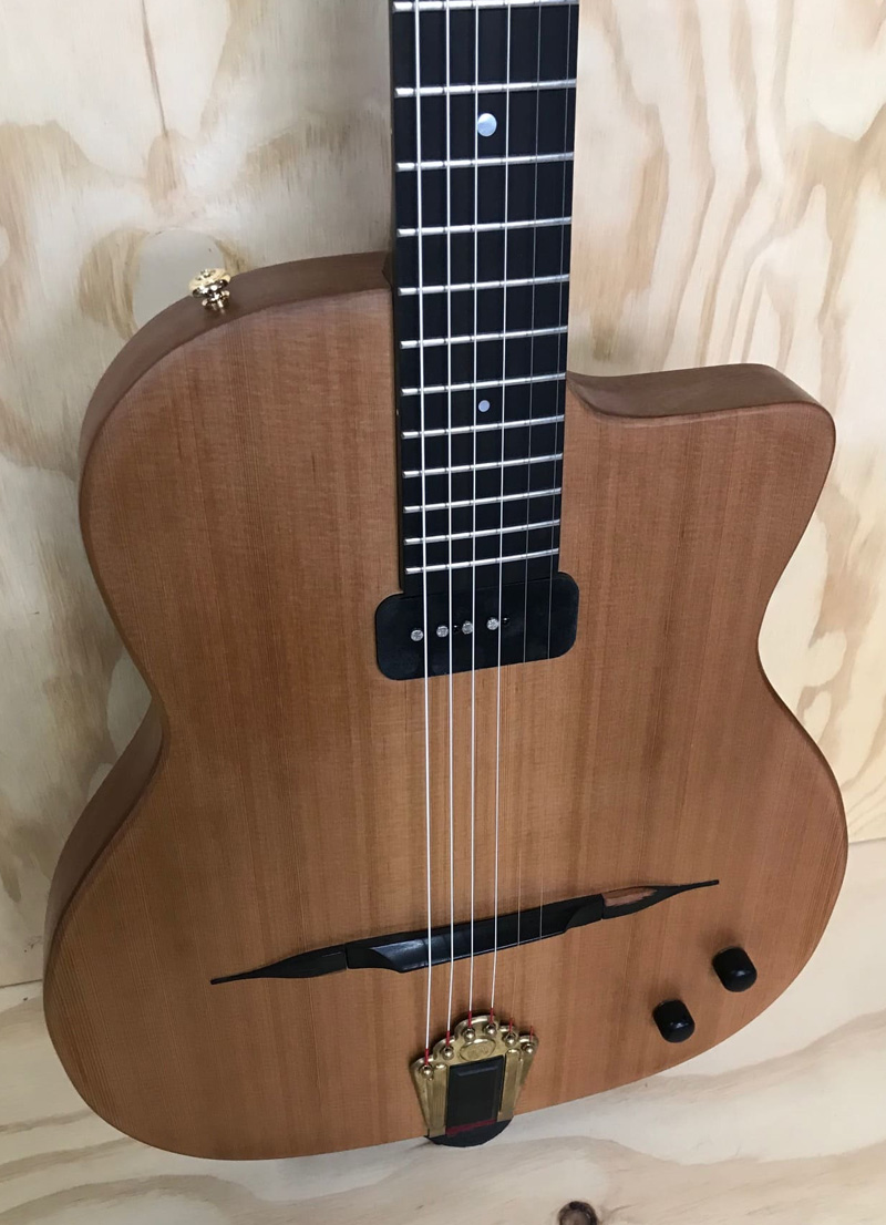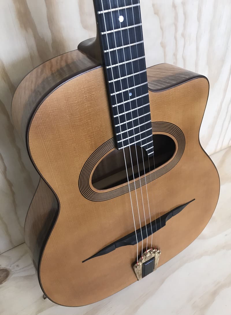 Built by hand in our workshop, the Django embodies the essence of gypsy jazz. A guitar with great projection and character, with bright timbre and precise response, designed for performers seeking authenticity and style in every note.